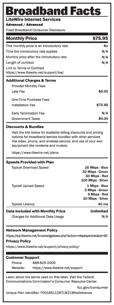 Broadband Facts Labels (Compare services and get information on fees, typical speeds, policies links, and more.)